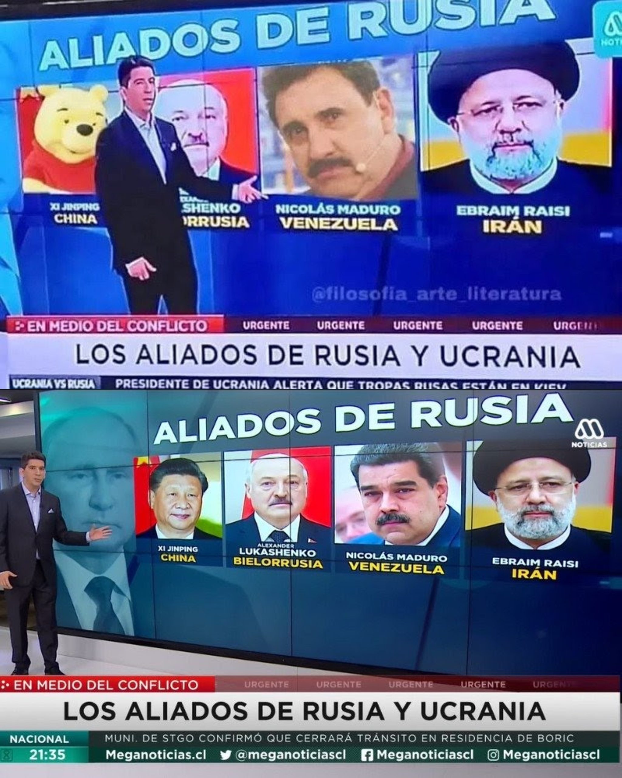 Uma imagem falsa viralizou e circula nas redes sociais desde o ataque dos Estados Unidos à Venezuela que culminou na captura do ditador Nicolás Maduro. A publicação sugere que um telejornal chileno teria confundido o ex-líder venezuelano com o apresentador Ratinho. Na realidade, trata-se de uma montagem. O frame original